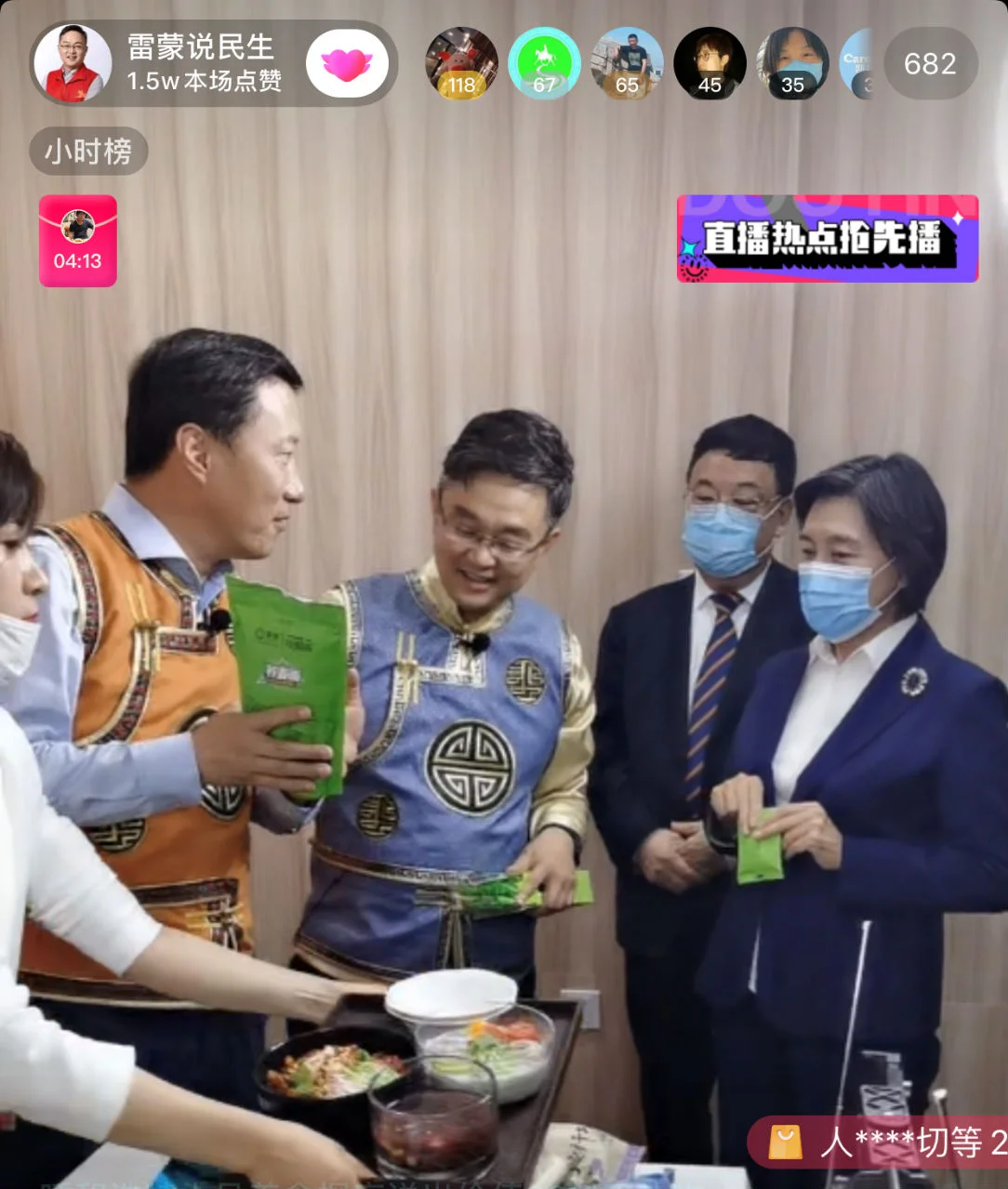 在直播期間,自治區黨委副書記、自治區主席布小林,自治區黨委常委、自治區常務副主(zhu)席馬學軍,自(zi)治區黨委(wei)常委(wei)、宣(xuan)傳部(bu)部(bu)長白玉剛,自(zi)治區副主(zhu)席鄭宏(hong)范走進直播間參觀帶貨活動,和(he)雷蒙(meng)老師及亢永強縣長溝(gou)通,要把我們內蒙(meng)古清水河蕎麥面的(de)獨特優(you)勢講出來,讓更多(duo)的(de)全國消(xiao)費者了解到,這樣才能讓大家愛生(sheng)上內蒙(meng)古的(de)好(hao)產品(pin),從(cong)而促進品(pin)牌(pai)推廣和(he)銷售;