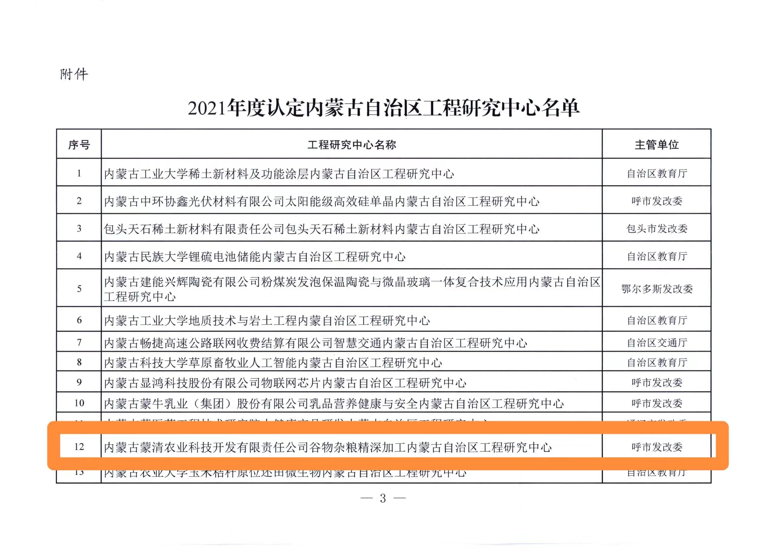 按照《內蒙古自治區工程研究中心管理辦法》和《內蒙古自治區工程實驗室管理辦法》的要求,在評審的基礎上,通過研究決定,內蒙古自治區發改委對我公司“谷物雜糧精深加工工程研究中心”認定為自治區工程研究中心。