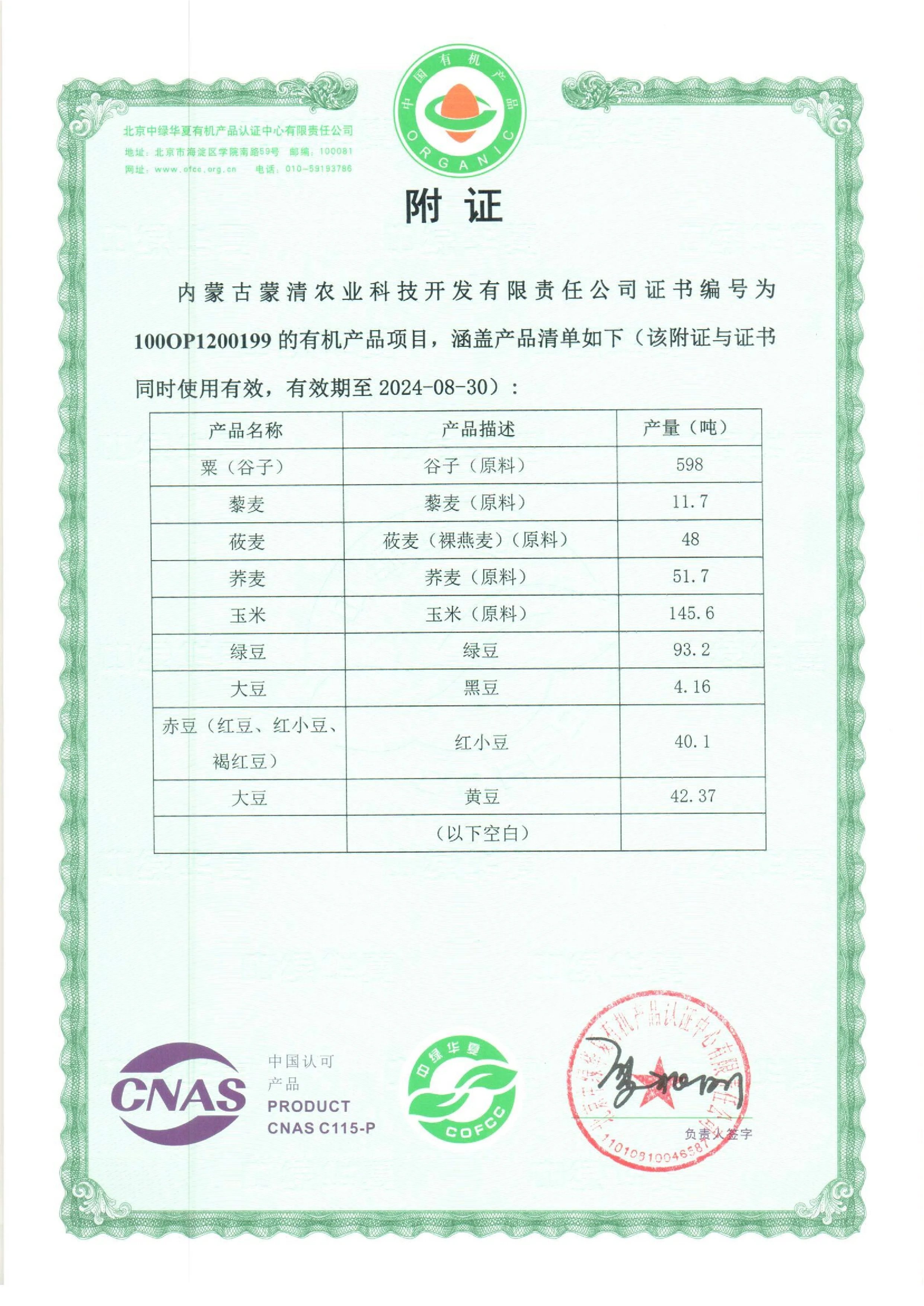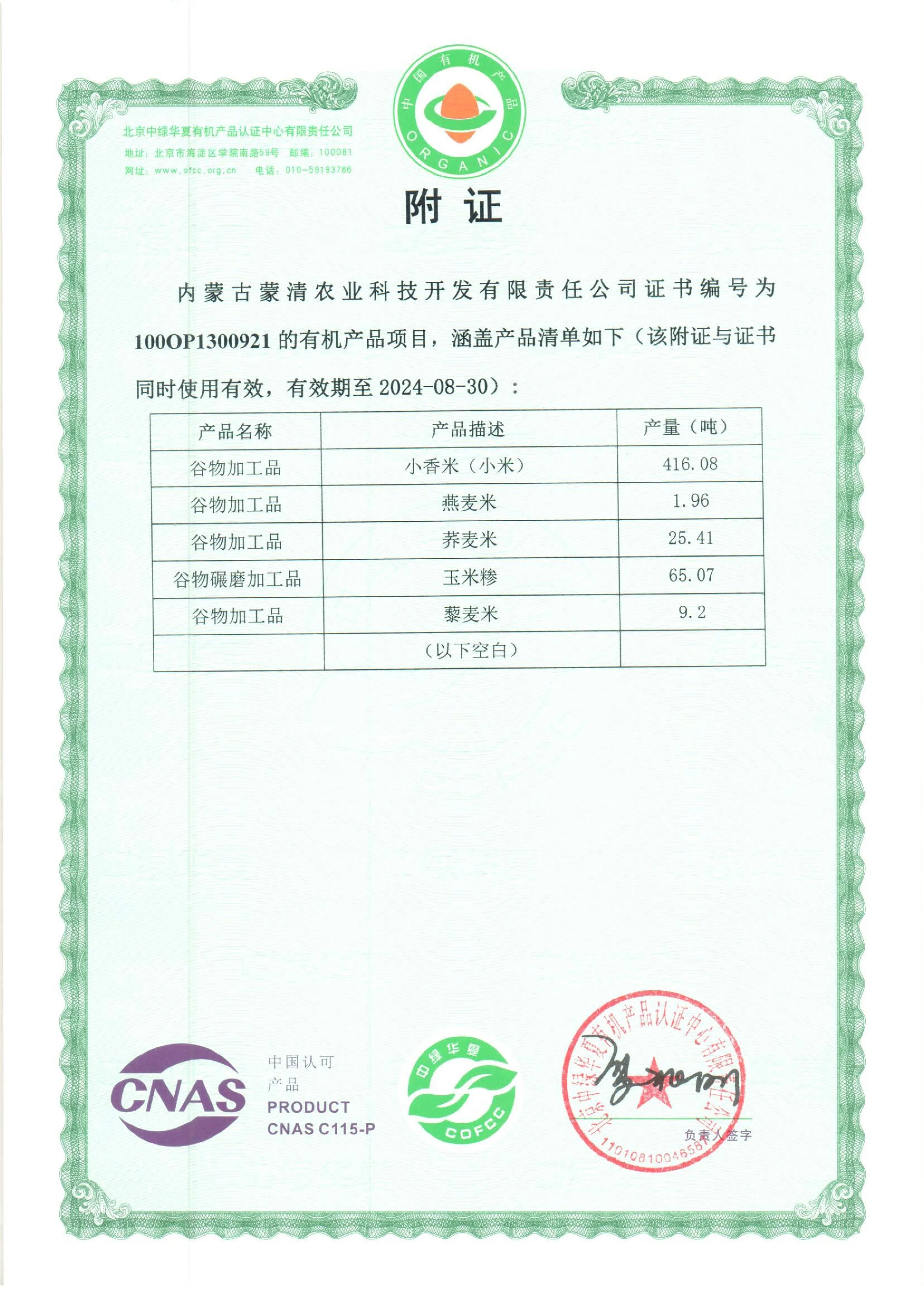 蒙清農業本(ben)次通過認證的產品(pin)包括有(you)機小(xiao)香(xiang)米、有(you)機藜麥米、有(you)機燕(yan)麥米等9個品(pin)種,覆蓋30多(duo)個產品(pin),可以滿足消費(fei)者(zhe)、客戶的多(duo)元化(hua)的需求(qiu)。