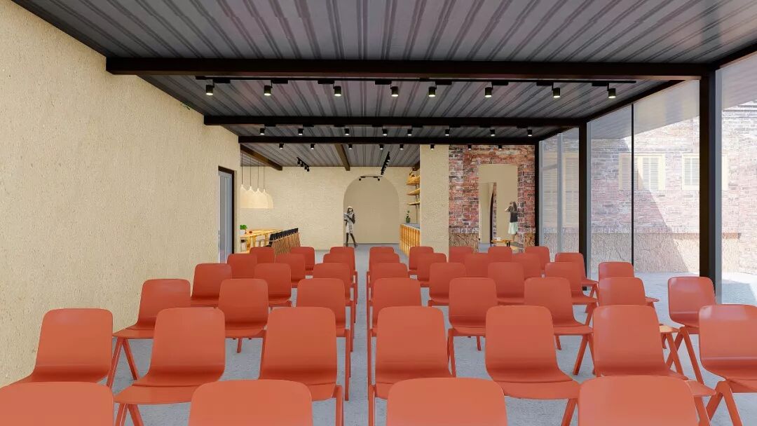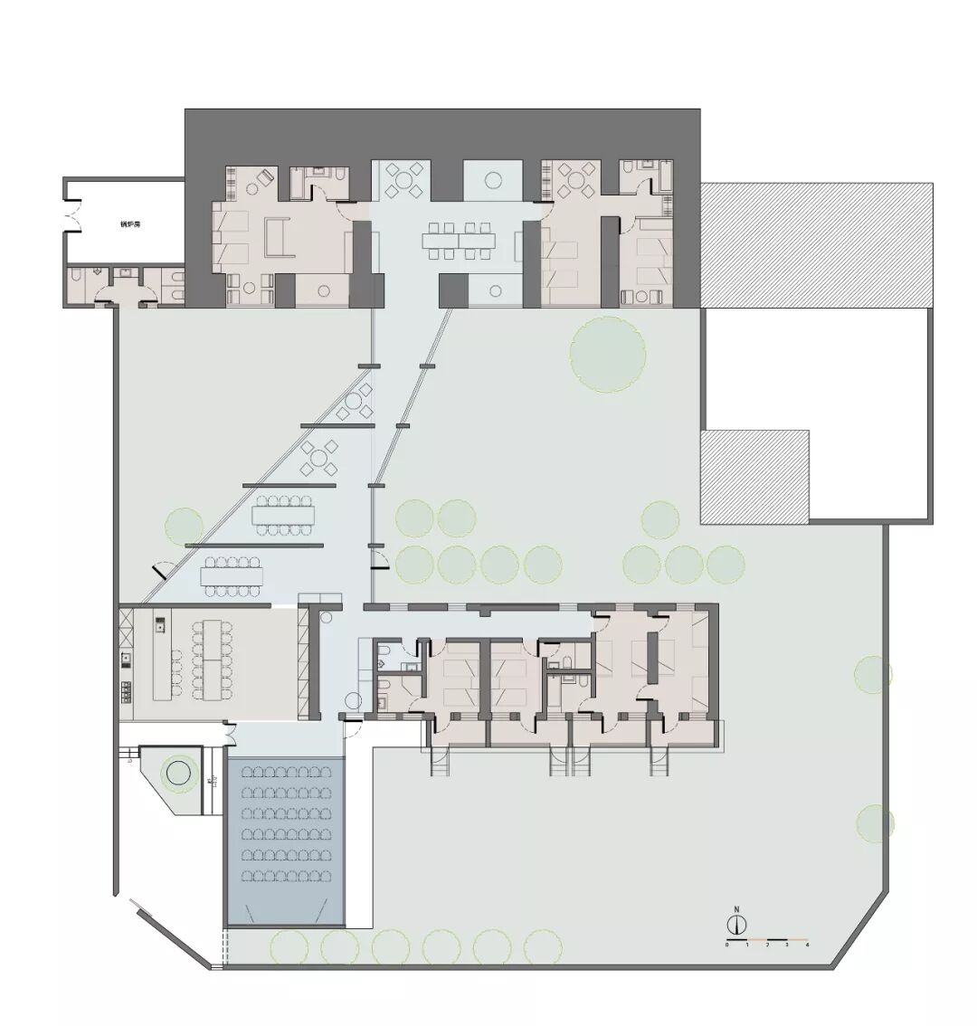 建筑空間主要配置包括:二十余人床位,六個衛生間,五六十人講堂,四十余人休閑座位。一個雙面開放式廚房,一處窯洞小客廳。如此一來,這樣一個內部聯通的多功能空間,即可欣賞四季,又不受季節冷暖的限制,室內滿鋪舒適的地暖,漫長冬季也可營業。