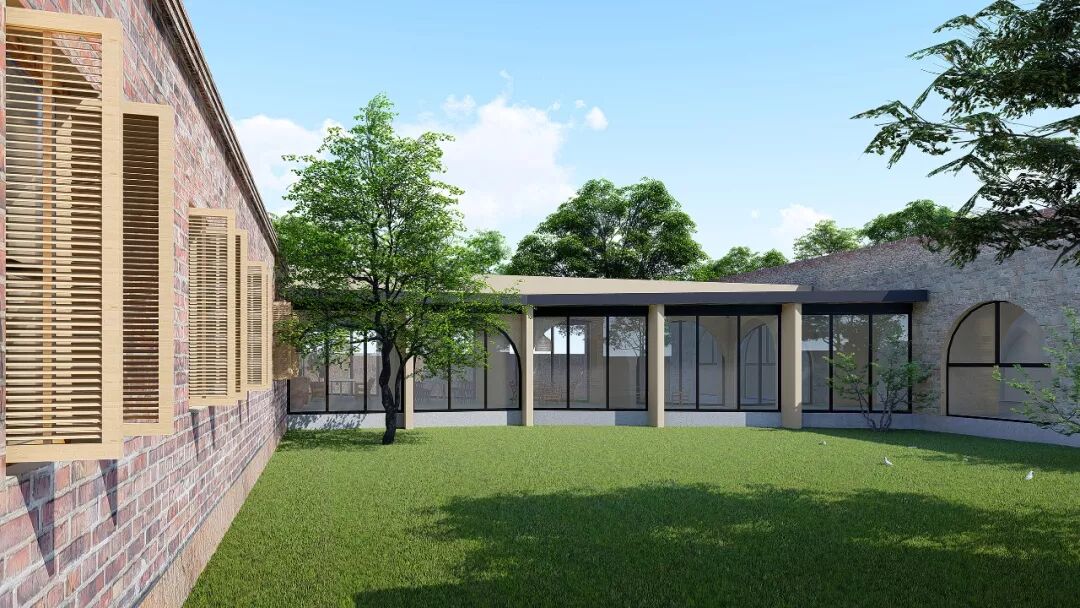 改造前后校舍院落對比照片與渲染效果圖@聞鶴建筑事務所