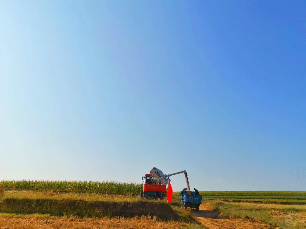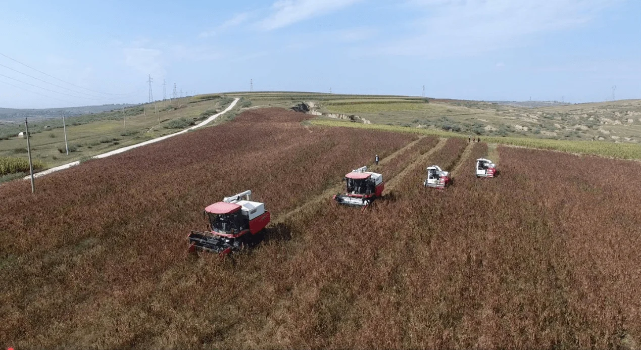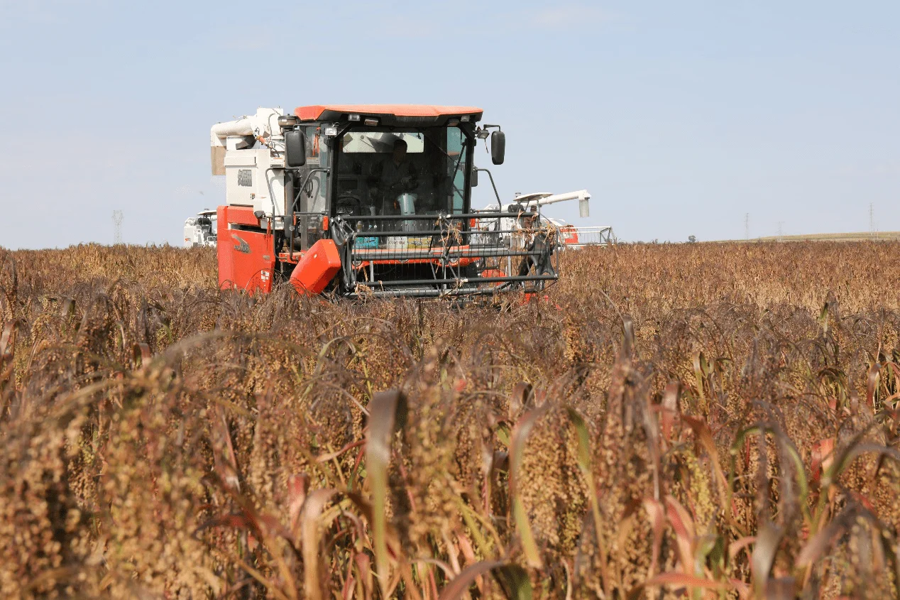 幾臺收割機(ji)(ji)在田(tian)間地頭(tou)轟隆作(zuo)響,場面(mian)讓人震撼,收割機(ji)(ji)手(shou)們靈活(huo)地操(cao)控(kong)著機(ji)(ji)器,在紅(hong)彤彤的黍子(zi)和金燦(can)燦(can)的谷子(zi)映襯下,形成(cheng)了一幅和諧美好的畫面(mian)。