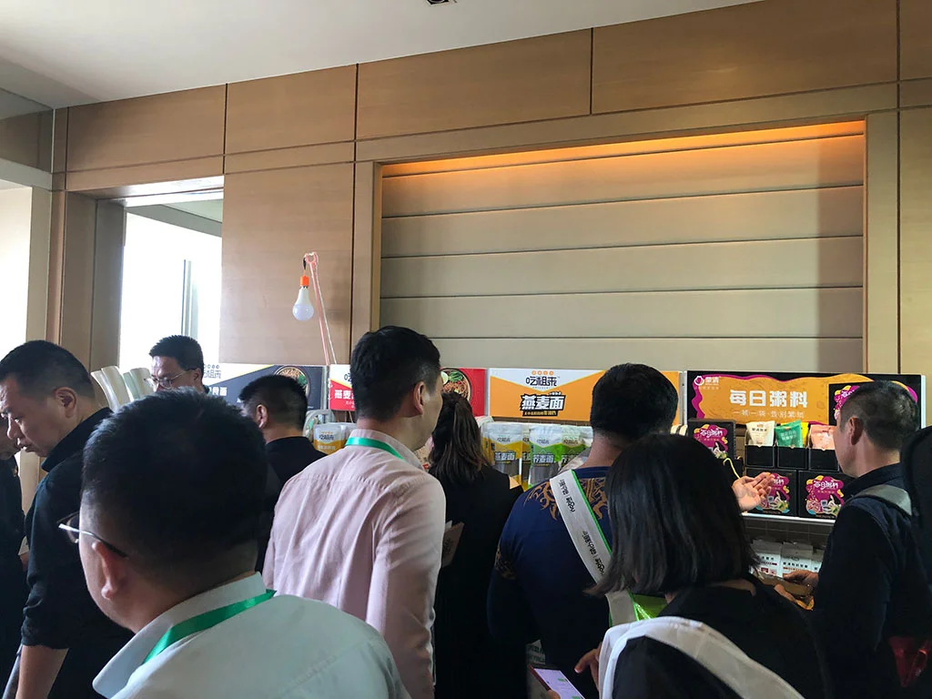 吃粗(cu)來(lai)燕麥面是本次(ci)糖酒參展商(shang)(shang)品中(zhong)唯一一款可即食的(de)純粗(cu)糧健(jian)康食品,由(you)于產品特性符合(he)當(dang)下大健(jian)康的(de)趨勢,蒙清吃粗(cu)來(lai)酒店(dian)展現場十分(fen)火爆(bao),日均(jun)接待(dai)200人次(ci)左右(you)。各類經銷(xiao)商(shang)(shang),包括特渠、大流通渠道、便利(li)店(dian)、商(shang)(shang)超的(de)經銷(xiao)商(shang)(shang)合(he)作(zuo)意(yi)向都非常強(qiang)烈,一些(xie)下沉市場的(de)空白(bai)區域的(de)經銷(xiao)商(shang)(shang)也建(jian)立了初步的(de)合(he)作(zuo)意(yi)向。